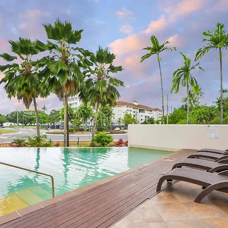 広々とした寝室2室のSunrise Palms - Resort-Style Escape By The Esplanade ケアンズはマウント・ウィットフィールド保護公園から自動車で10分で、マディーズ プレイグラウンドなどの家族連れに人気のスポットから1.9キロメートル離れた所の場所にあります。 ビジネスやレジャーのお客様のニーズに合わせてWi-Fiと無料の専用駐車場を提供しています。